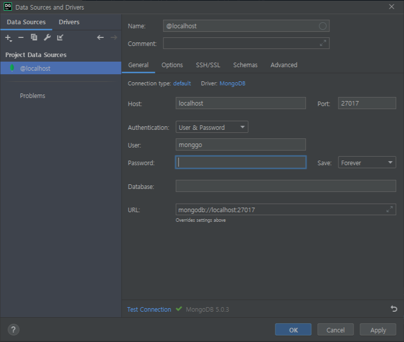 Host에서 DataGrip를 이용하여 MongoDB 접근